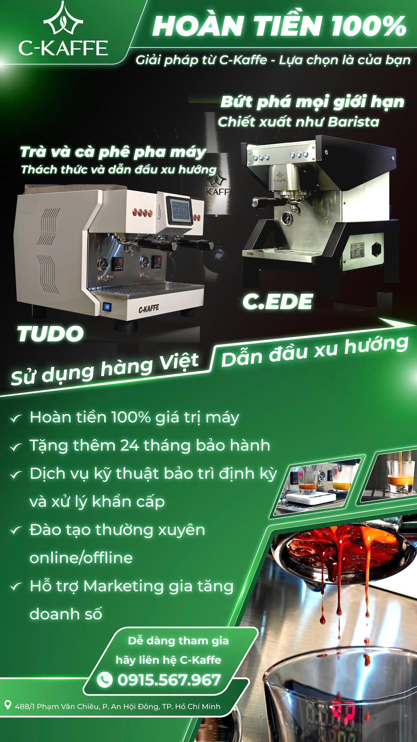 {"company_logo":"https:\/\/www.ckaffe.vn\/datafiles\/50619\/upload\/files\/Logo%20_%20C-KAFFE.png","company_name":"Công ty Cổ phần Coffee Y Sinh","company_email":"info@c-kaffe.vn","company_phone":"0915 567 967","company_address":"488\/1 Đ. Phạm Văn Chiêu, Phường An Hội Đông, TP Hồ Chí Minh","company_fax":"","date_now":1776439292,"company_tags":["Coffe Y Sinh","CKaffe","máy pha cà phê","máy pha cà phê Việt Nam","máy pha cà phê kinh doanh","máy pha trà","cà phê pha máy","trà pha máy","CEDE","TUDO","cà phê mộc"],"search_keyword":null,"facebook_comment":"https:\/\/www.ckaffe.vn\/chuong-trinh-mua-may-hoan-tien","breadscrumb":[{"url":"https:\/\/www.ckaffe.vn","name":"Trang chủ","icon":"","active":false},{"url":"https:\/\/www.ckaffe.vn\/san-pham","name":"Sản phẩm","icon":"","active":false},{"url":"javascript:void(0)","name":"CHƯƠNG TRÌNH MUA MÁY HOÀN TIỀN","icon":"","active":true}],"list_products_tmp":[],"list_section":[{"id":634402,"name":"SECTION-441763","seo_name":"#w30s-section-634402","url":"#w30s-section-634402"},{"id":634406,"name":"BREADCRUMB","seo_name":"#w30s-section-634406","url":"#w30s-section-634406"},{"id":669807,"name":"3 cột sản phẩm - Right Sidebar","seo_name":"#w30s-section-669807","url":"#w30s-section-669807"},{"id":634404,"name":"SECTION-442336","seo_name":"#w30s-section-634404","url":"#w30s-section-634404"},{"id":634400,"name":"SECTION-441761","seo_name":"#w30s-section-634400","url":"#w30s-section-634400"},{"id":634399,"name":"SECTION-441759","seo_name":"#w30s-section-634399","url":"#w30s-section-634399"},{"id":634405,"name":"SECTION-428149","seo_name":"#w30s-section-634405","url":"#w30s-section-634405"}],"category_desc":"Đây là trang tổng hợp tất cả các sản phẩm mà C-Kaffe đang kinh doanh như máy pha cà phê C.EDE, máy pha cà phê & trà TUDO 2G, nguyên liệu cà phê mộc, trà pha máy, bột kem","category_image_url":"https:\/\/www.ckaffe.vn\/datafiles\/50619\/upload\/images\/hoan%20tien.jpg","category_icon_url":"https:\/\/www.ckaffe.vn\/datafiles\/50619\/upload\/files\/favicon_ckaffe.png?t=1757992185","slider_range_min":0,"slider_range_max":0,"type_page":3,"id_page":439624,"widget_14852736":{"content_data":{"content":"Nhận báo giá"}},"widget_14852739":{"content_data":{"content":""}},"widget_15474388":{"content_data":{"content":"Đây là dữ liệu mặc định của Widget đoạn văn. Bạn có thể tự sửa nội dung này trong phần tác vụ khác của Widget hoặc thiết lập dữ liệu động tùy theo nhu cầu.","price_final":"Giá: Liên Hệ"}},"widget_15474391":{"content_data":{"content":"Thêm vào giỏ hàng"}},"widget_15474393":{"content_data":{"content":"So sánh"}},"widget_15474379":{"content_data":{"content":"Danh sách"}},"widget_15474394":{"content_data":{"content":"Yêu thích"}},"widget_15474395":{"content_data":{"content":"Xem nhanh"}},"widget_15474397":{"content_data":{"content":"Từ khóa tìm kiếm"}},"widget_15474402":{"content_data":{"content":"Danh mục sản phẩm"}},"widget_15474406":{"content_data":{"content":"Thương hiệu"}},"widget_15474409":{"content_data":{"content":"Dịch vụ nổi bật"}},"widget_15474417":{"content_data":{"content":"Thẻ phổ biến"}},"widget_15474398":{"content_data":[]},"widget_15474400":{"content_data":{"content":"Tìm kiếm"}},"widget_15474407":{"content_data":[{"id":57341,"name":"C-Kaffe","desc":"","content":"","image_url":"https:\/\/www.ckaffe.vn\/datafiles\/50619\/upload\/images\/avatar_ckaffe.png?t=1759975236","image_thumb_url":"https:\/\/www.ckaffe.vn\/datafiles\/50619\/upload\/thumb_images\/avatar_ckaffe.png?t=1776412384","tags":"","count_view":0,"seo_name":"c-kaffe","date_update":0,"date_created_format":0,"meta_title":"","meta_desc":"","meta_keyword":"","url":"?brand-id=57341","link":""}]},"widget_14852750":{"content_data":{"content":""}},"widget_14852754":{"content_data":{"content":"Thông tin"}},"widget_14852719":{"content_data":{"content":"Về chúng tôi"}},"widget_14852720":{"content_data":{"content":"<p>C-Kaffe cung cấp giải pháp toàn diện về trà và cà phê để giúp mọi người có thể kinh doanh, trải nghiệm trà và cà phê đúng cách, đồng thời góp phần lan tỏa nét đẹp văn hóa Việt và xây dựng chuỗi giá trị bền vững - từ nông dân đến người tiêu dùng.<\/p>\n"}},"widget_14852723":{"content_data":{"content":"Liên kết"}},"widget_14852730":{"content_data":{"content":"Thông tin liên hệ"}},"widget_14852724":{"content_data":[{"id":439618,"name":"Giới thiệu","desc":"","content":"","image_url":"https:\/\/www.ckaffe.vn\/datafiles\/50619\/upload\/files\/favicon_ckaffe.png?t=1757992185","image_thumb_url":"https:\/\/www.ckaffe.vn\/datafiles\/50619\/upload\/thumb_files\/favicon_ckaffe.png?t=1774859861","tags":"","count_view":0,"seo_name":"gioi-thieu","date_update":0,"date_created_format":"0","meta_title":"","meta_desc":"","meta_keyword":"","unique":298034,"index":0},{"id":439619,"name":"Dịch vụ","desc":"","content":"","image_url":"https:\/\/www.ckaffe.vn\/datafiles\/50619\/upload\/files\/favicon_ckaffe.png?t=1757992185","image_thumb_url":"https:\/\/www.ckaffe.vn\/datafiles\/50619\/upload\/thumb_files\/favicon_ckaffe.png?t=1774859861","tags":"","count_view":0,"seo_name":"dich-vu","date_update":0,"date_created_format":"0","meta_title":"","meta_desc":"","meta_keyword":"","unique":298023,"index":1},{"id":439620,"name":"Tin tức","desc":"","content":"","image_url":"https:\/\/www.ckaffe.vn\/datafiles\/50619\/upload\/files\/favicon_ckaffe.png?t=1757992185","image_thumb_url":"https:\/\/www.ckaffe.vn\/datafiles\/50619\/upload\/thumb_files\/favicon_ckaffe.png?t=1774859861","tags":"","count_view":0,"seo_name":"tin-tuc","date_update":0,"date_created_format":"0","meta_title":"","meta_desc":"","meta_keyword":"","unique":298025,"index":2},{"id":439623,"name":"Liên hệ","desc":"","content":"","image_url":"https:\/\/www