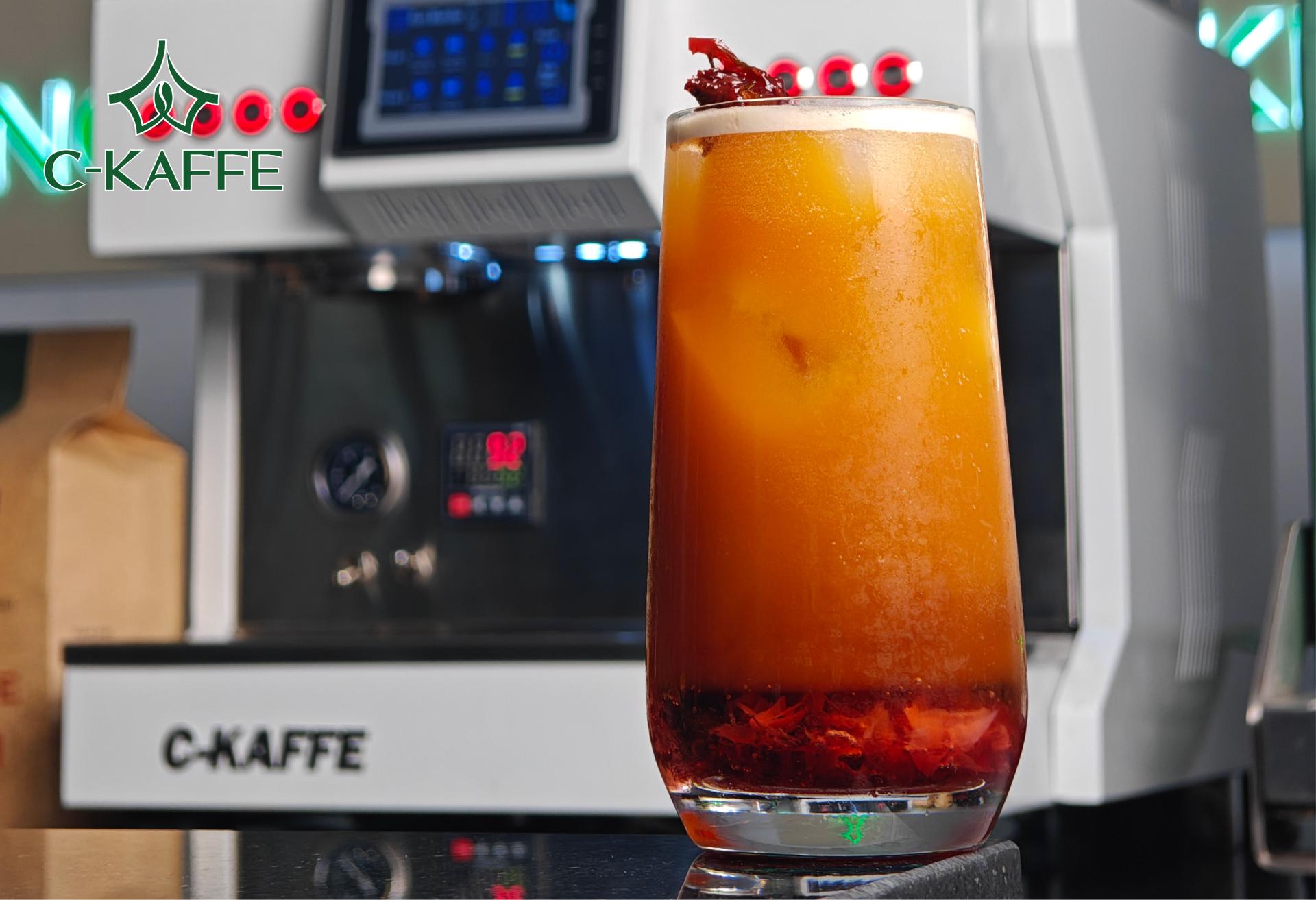 Món uống kết hợp giữa mứt hoa hồng thơm dịu, soda tươi mát và phần flash chilled – tức cà phê được chiết xuất nóng bằng máy pha TUDO 2 Group của C-Kaffe, sau đó làm lạnh nhanh để giữ trọn hương vị. Flash chilled giúp cà phê giữ được vị đậm nhưng không đắng, hoà quyện cùng hoa hồng và soda tạo nên ly nước cực cuốn. Một món vừa đẹp mắt, vừa nâng mood, vừa dễ áp dụng cho menu quán.